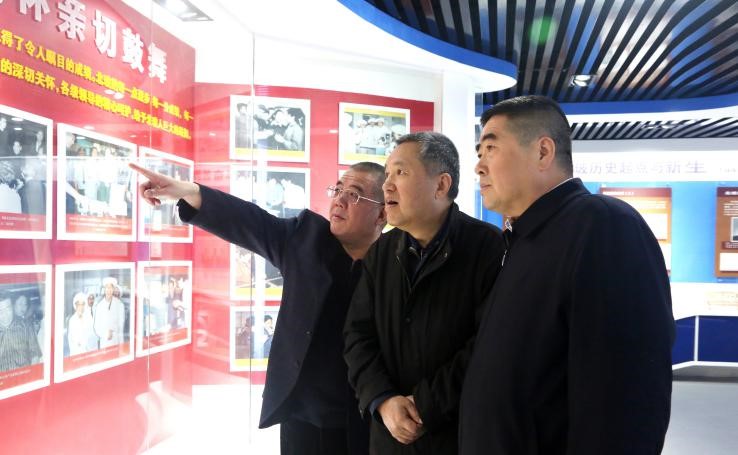 2019年4月一輕控股公司黨委書記、董事長蘇志民陪同國家市場監督管理總局局長張茅參觀北玻展室